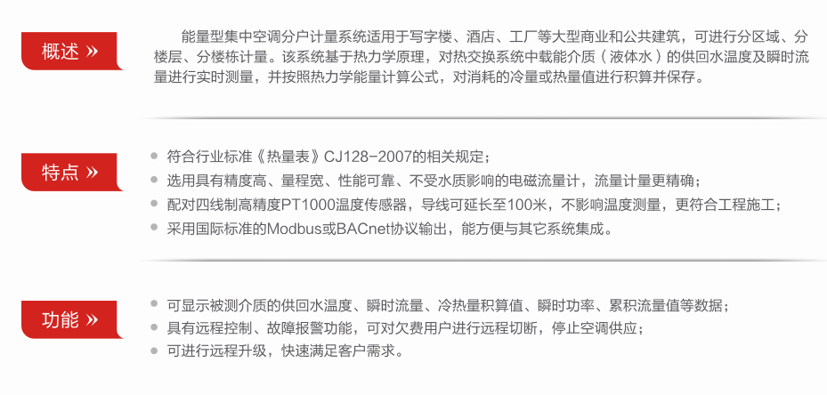 中央空調計費系統是對各用戶的空調用量進行獨立計量和收費,以計量為基礎、收費為核心的系統。使用中央空調計費系統,能促進節約能源,提高節能效益,減 少主機系統負荷,延長設備使用壽命;可實現空調能源商品化,用戶’“多用多交,少用少交”。滿足用戶按需使用、按量收費的需求,有利于節能管理,符合國家節能政策。按照建筑物及業主使用的實際情況集中空調計費系統分為以下三大類: