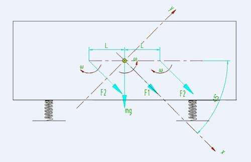直線振動篩:v=kv×λ×ω×cos(δ) ×[1+tg(δ)×tg(α)]